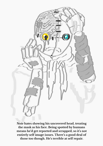 20 pages full of images and notes covering everything from a human masking guy who sucks at self repair to an attempt at making a mushroom powered system that didn't quiiite work out.